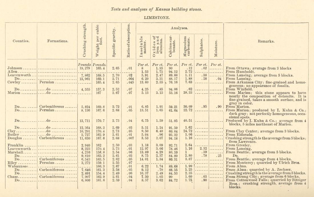 The foregoing table is made from the collection of limestone specimens at the World's Columbian Exposition; the determinations having been made by Dr. S. W. Williston, of Lawrence, Kans.