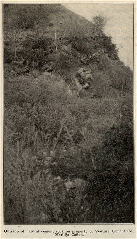 “The only known limestone deposits in the county of any commercial value are those limestone beds outcropping in the Matilija Cañon. This limestone is said to be a natural rock cement.