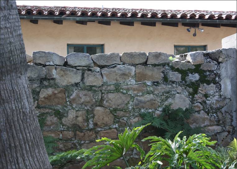 Sandstone and mortar wall in the Santa Barbara Mission Cemetery |