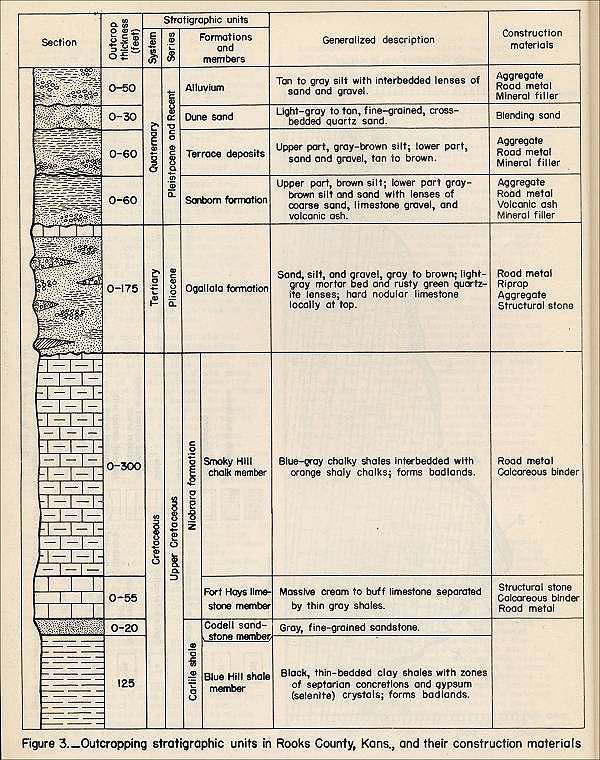 Figure 3. Outcropping stratigraphic units in Smith County, Kansas, and their construction materials. |
