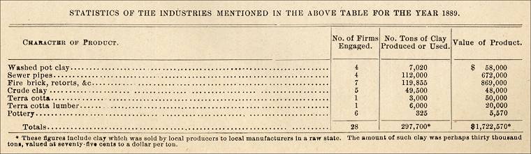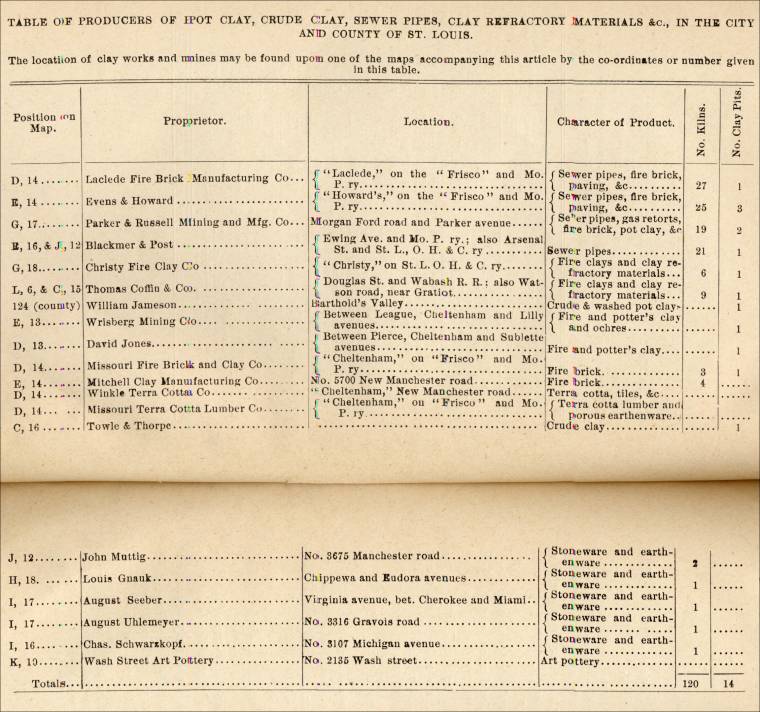 (* Please note that the rest of the section on the clay industry in the St. Louis City and County area will not be presented here, although the photograph and the tables from the section will be presented below.)