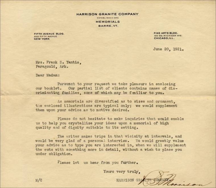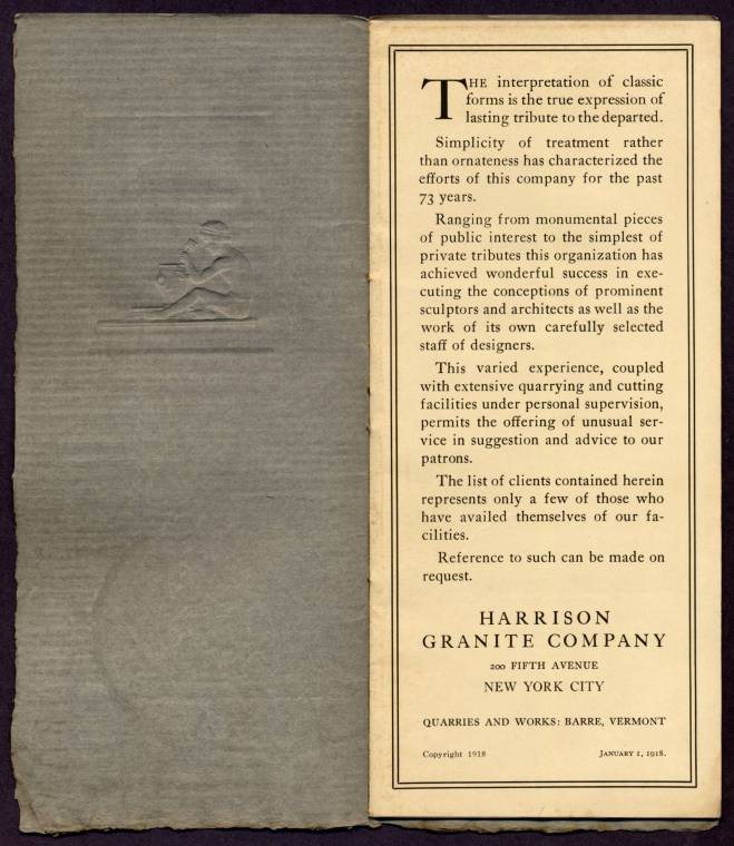 Main Office: 161 Summer St., Boston, Massachusetts – Quarries and Works: Barre, Vermont